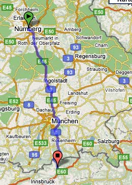 - bei Ausfahrt 21-Kreuz München-Süd in A8 Richtung Salzburg/Innsbruck einfädeln (16,5 km)